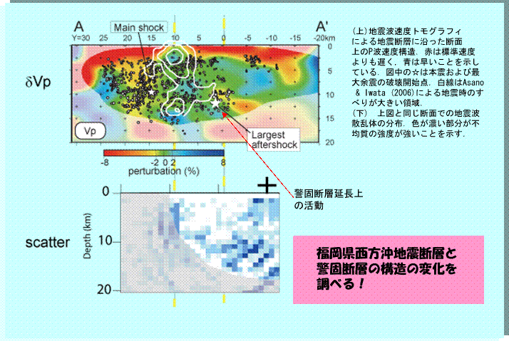 本研究では,福岡県西方沖地震および警固断層周辺の地殻活動を地球物理学的観測データから,微小地震の検出を試みるとともに高解像度でイメージング(描画)し,福岡県西方沖地震発生メカニズムおよび将来の警固断層地震発生機構の解明を目指しています.これらは次の研究によって実行されます.