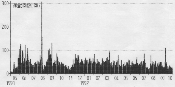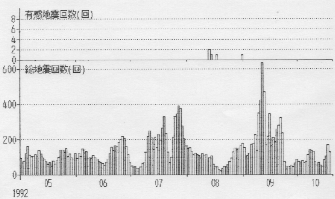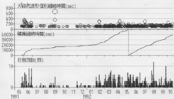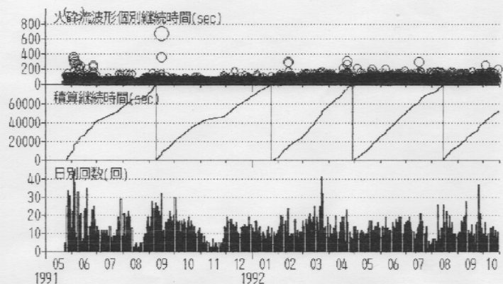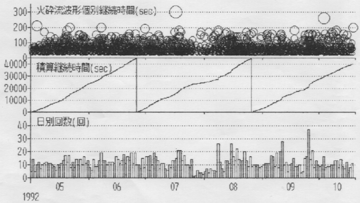 火砕流と思われる震動波形の発生状況は第1図に示すとおり5月以降も現在に至るまで頻繁に発生しています。