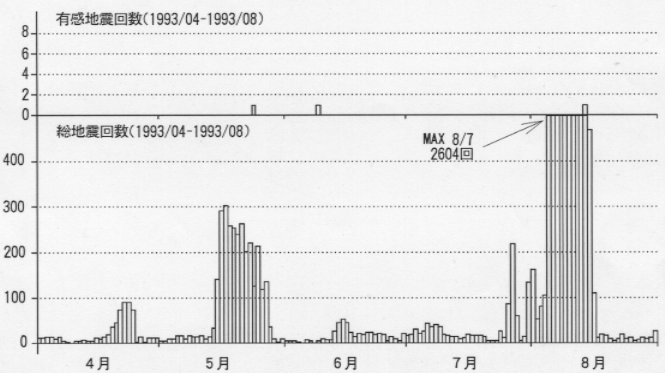 平成5年 8月 5日14時00分第41号 火山性地震頻発