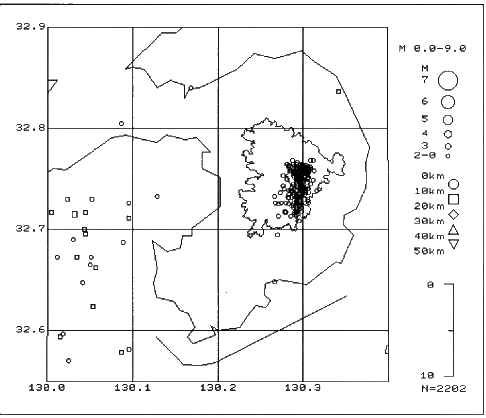 なおここで用いた地震・微動の回数データは,1992年3月3T日までについては再度震動記録等の見直しを行なった数値であり,また,1992年4月1日以降については速報値を用いており,後日変更される事があります。
