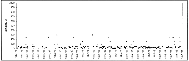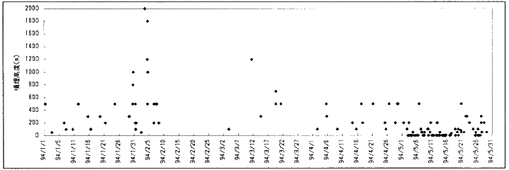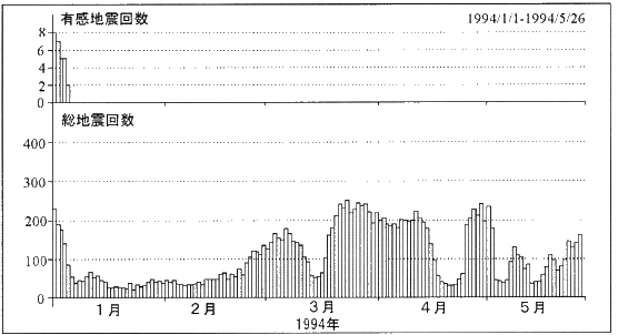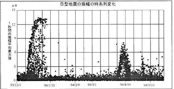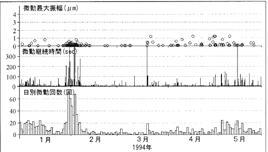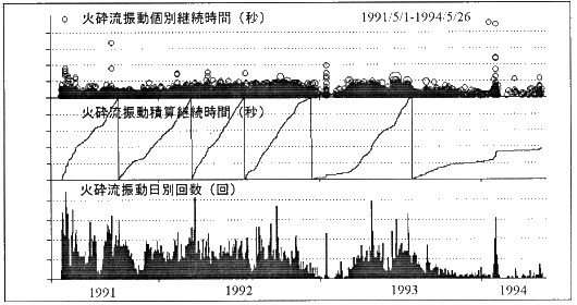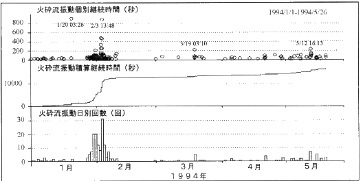 第2図 火砕流と思われる震動波形の発生状況(1994年1月以降)
