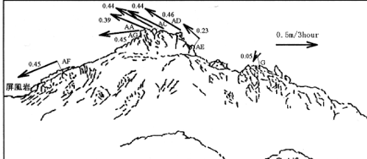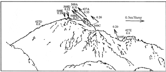 第11-3図 セオドライト観測による溶岩ドームの動き