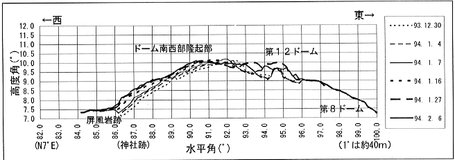第12-1図 溶岩ドームの稜線変化(1993/12/30-1994/2/6:仁田峠第2展望台より)