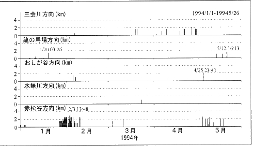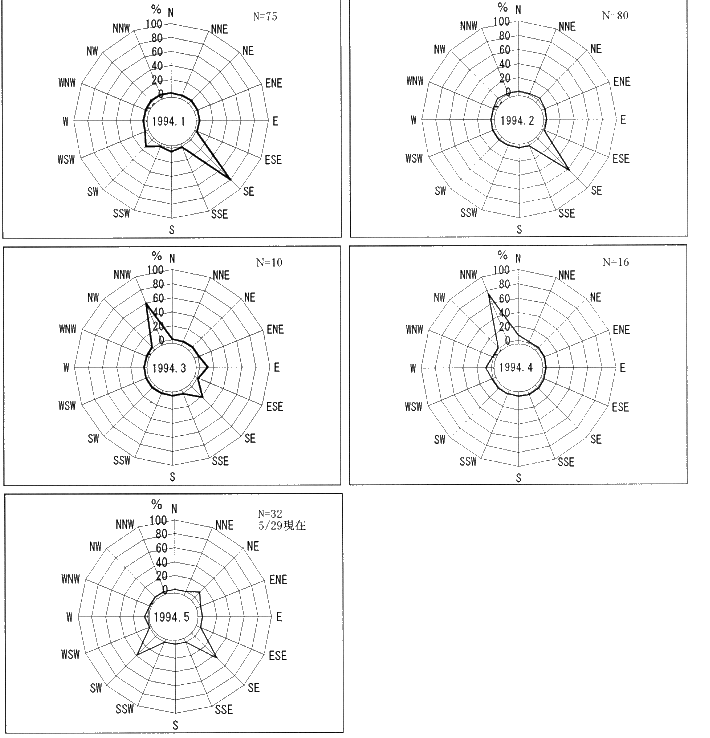 第3図 方向別火砕流の発生状況(1994年1月以降)