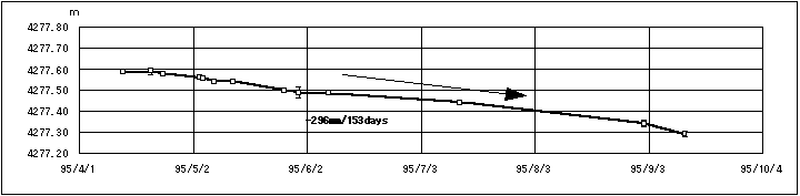 通産省工業技術院地質調査所と気象庁で行っている光波測量によると,普賢岳旧山体に付けた反射鏡との斜距離は北側及び南側の測線ともに,ほとんど変化はありませんでした。