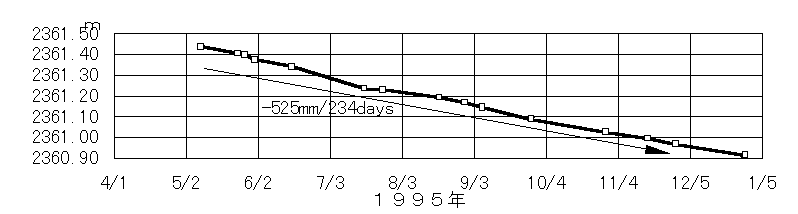 第3図 溶岩ドームの斜距離変化(1995/5/8-12/28:T6(仁田第2)−D2)