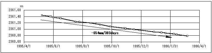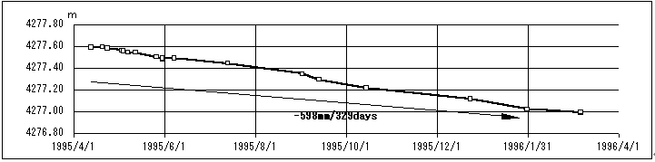 通産省工業技術院地質調査所と気象庁で行っている光波測量によると,普賢岳旧山体に付けた反射鏡との斜距離は北側及び南側の測線ともに,ほとんど変化はありませんでした。