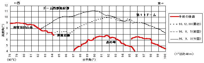 第1図 平成新山の稜線変化(1996/8/5−9/3 仁田第2展望所)