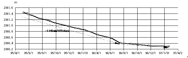 気象庁と通産省工業技術院地質調査所で行っている光波測量によると,普賢岳山体に付けた反射鏡との斜距離は北側及び南側の測線ともに,ほとんど変化はありませんでした。