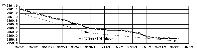 図1平成新山までの斜距離変化(1997/5/8-98/2/18:T6(仁田峠第2展望所)-D2
