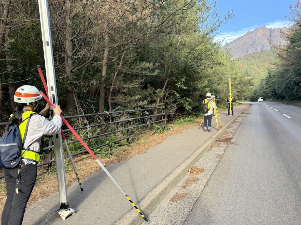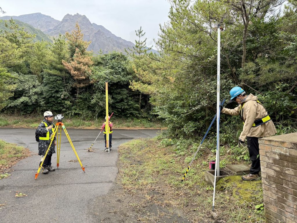 2025年11月10〜13日に,京都大学,北海道大学, 東京大学との共同で鹿児島県桜島の約23kmの路線で水準測量調査を実施し,桜島火山の地下のマグマ溜まりの膨張・収縮による地殻隆起量を測定しました.