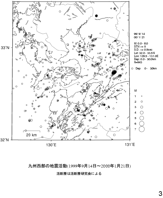 雲仙岳火山活動状況(1999年9月〜2000年1月)