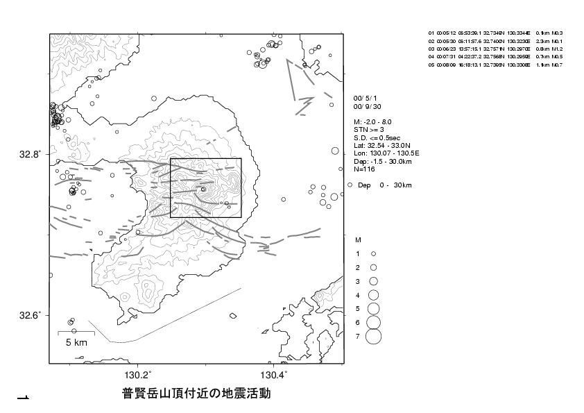 雲仙岳火山活動状況(2000年5月〜2000年9月)