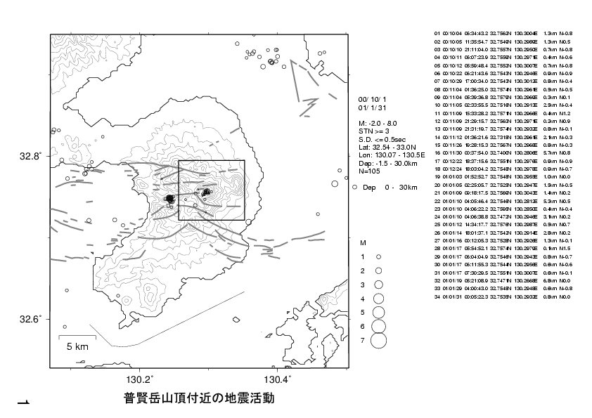 1. 雲仙岳火山活動状況(2000年10月〜2001年1月)