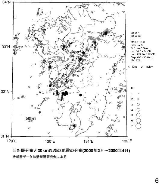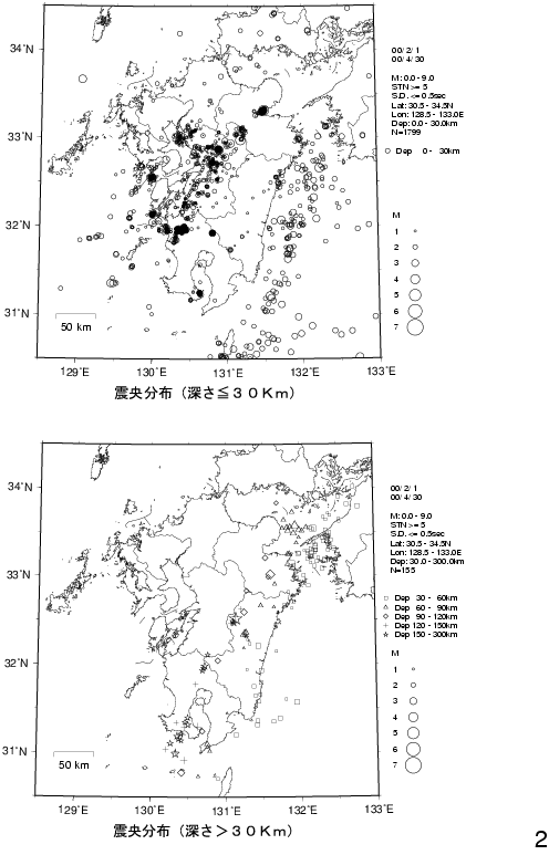 1. 九州の震源分布(2000年2月〜2000年4月)