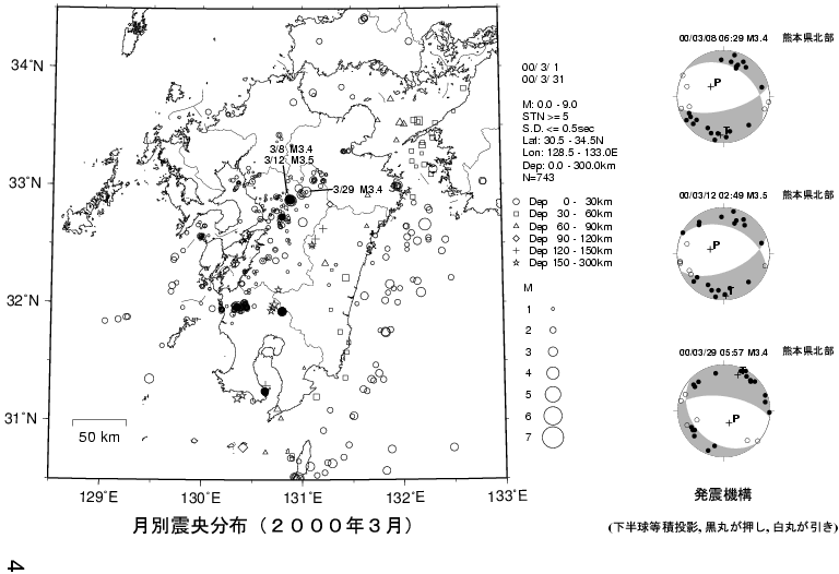 九州の地震活動(2000年2月〜2000年4月)