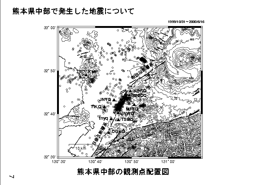 1. 熊本県中部の観測点配置図