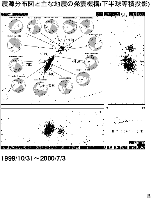 2. 震源分布図と主な地震の発震機構(下半球等積投影)