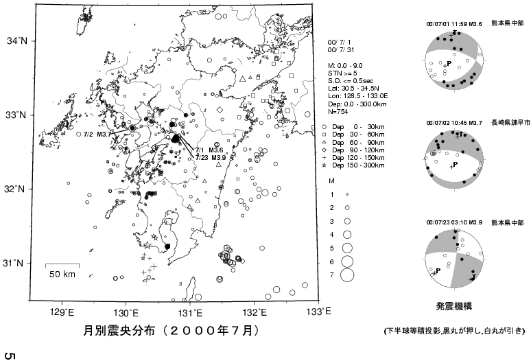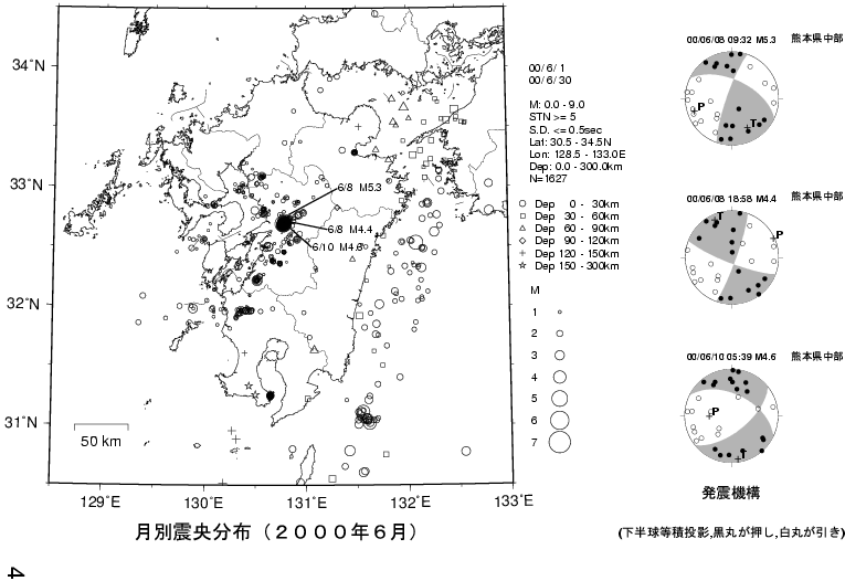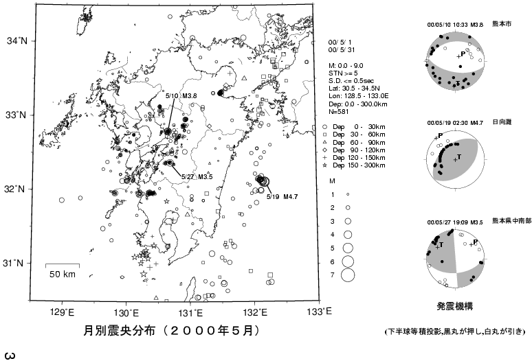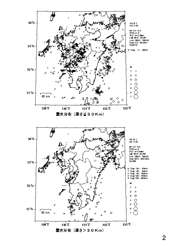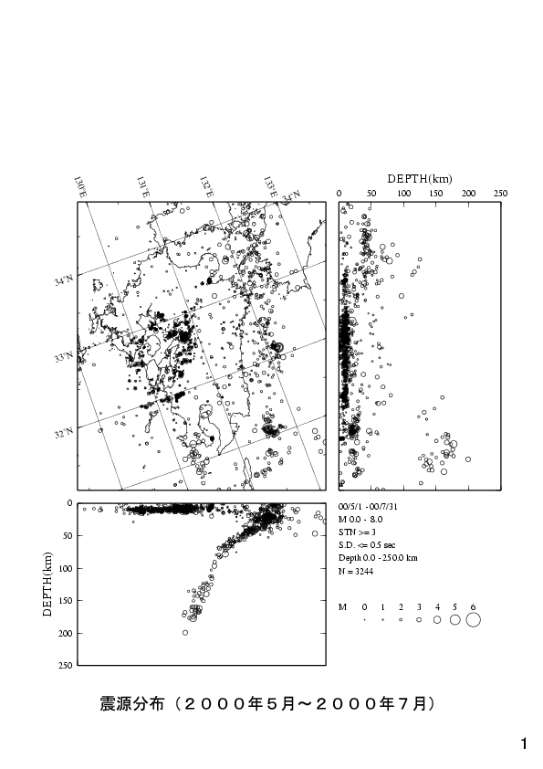 1. 九州の地震活動(2000年5月〜2000年7月)