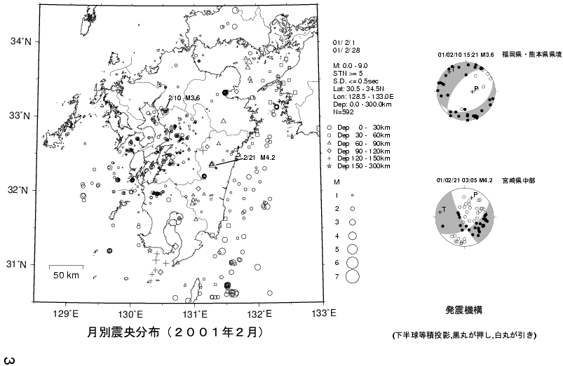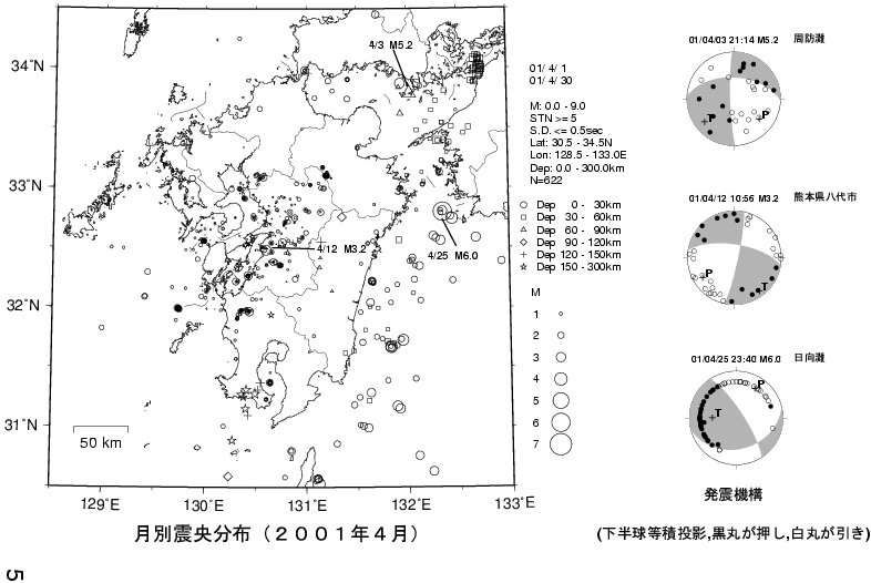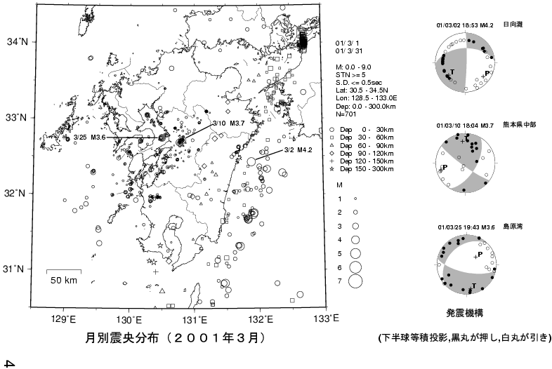 1. 九州の地震活動(2001年2月〜2001年4月)