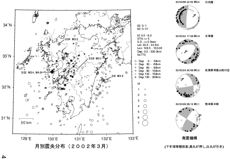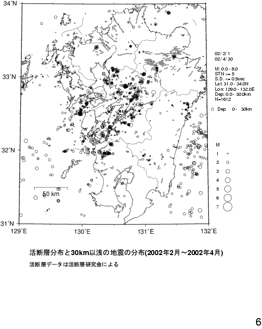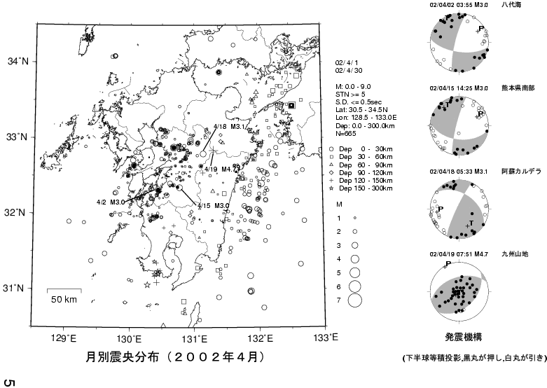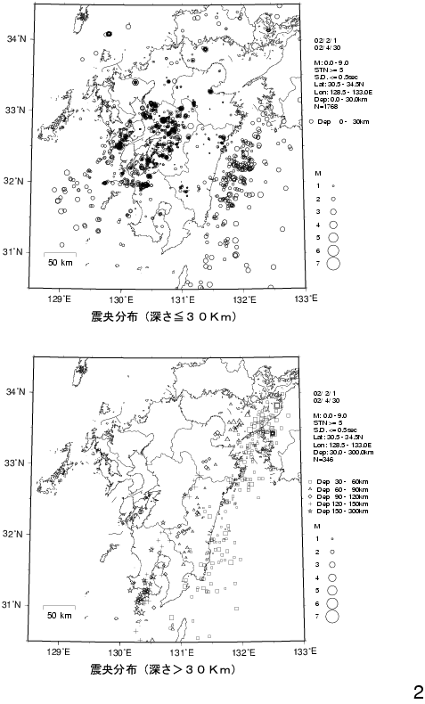 1. 九州の震源分布(2002年2月〜2002年4月)
