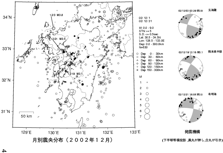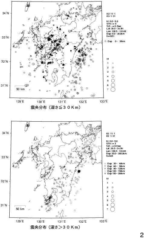 1. 九州の地震活動(2002年11月〜2003年1月)