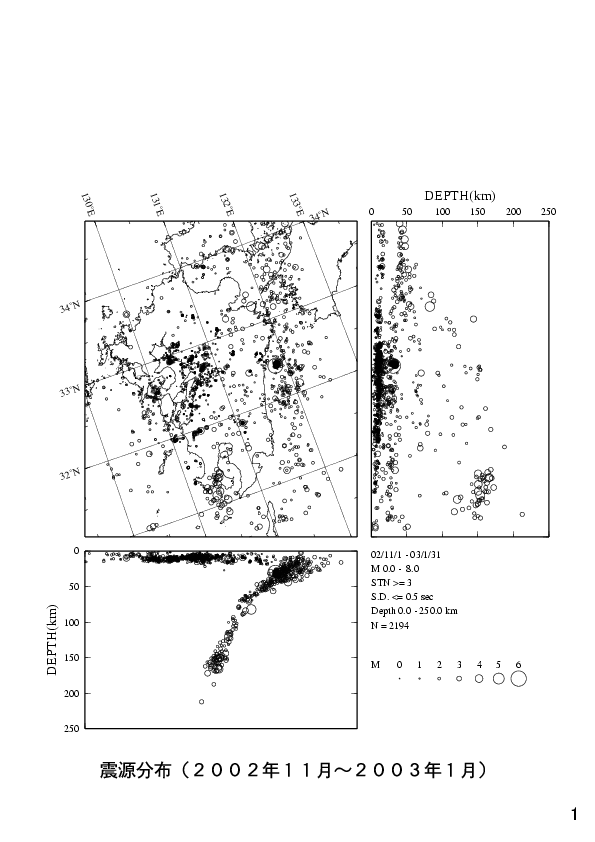1. 九州の震源分布(2002年11月〜2003年1月)