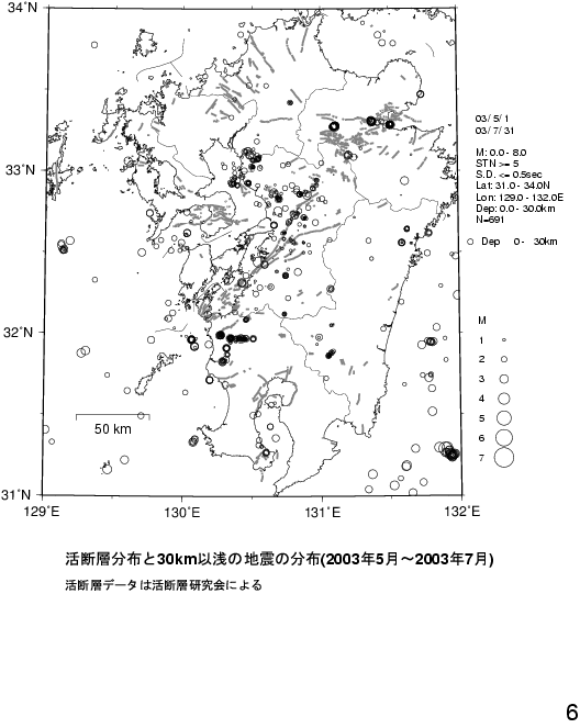 九州の地震活動(2003年5月〜2003年7月)