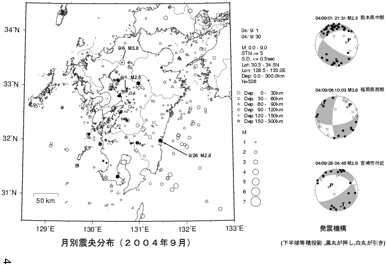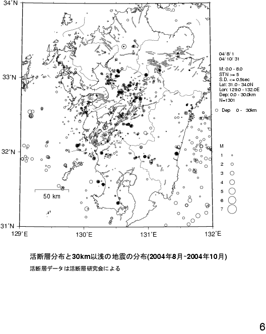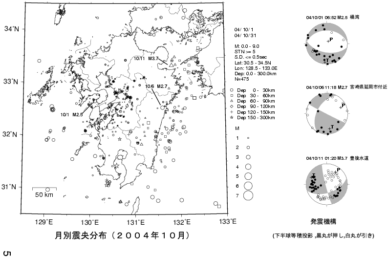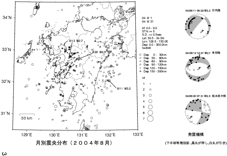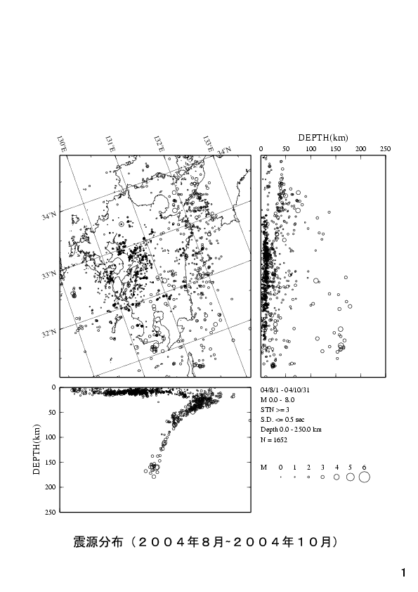 1. 九州の震源分布(2004年8月〜2004年10月)